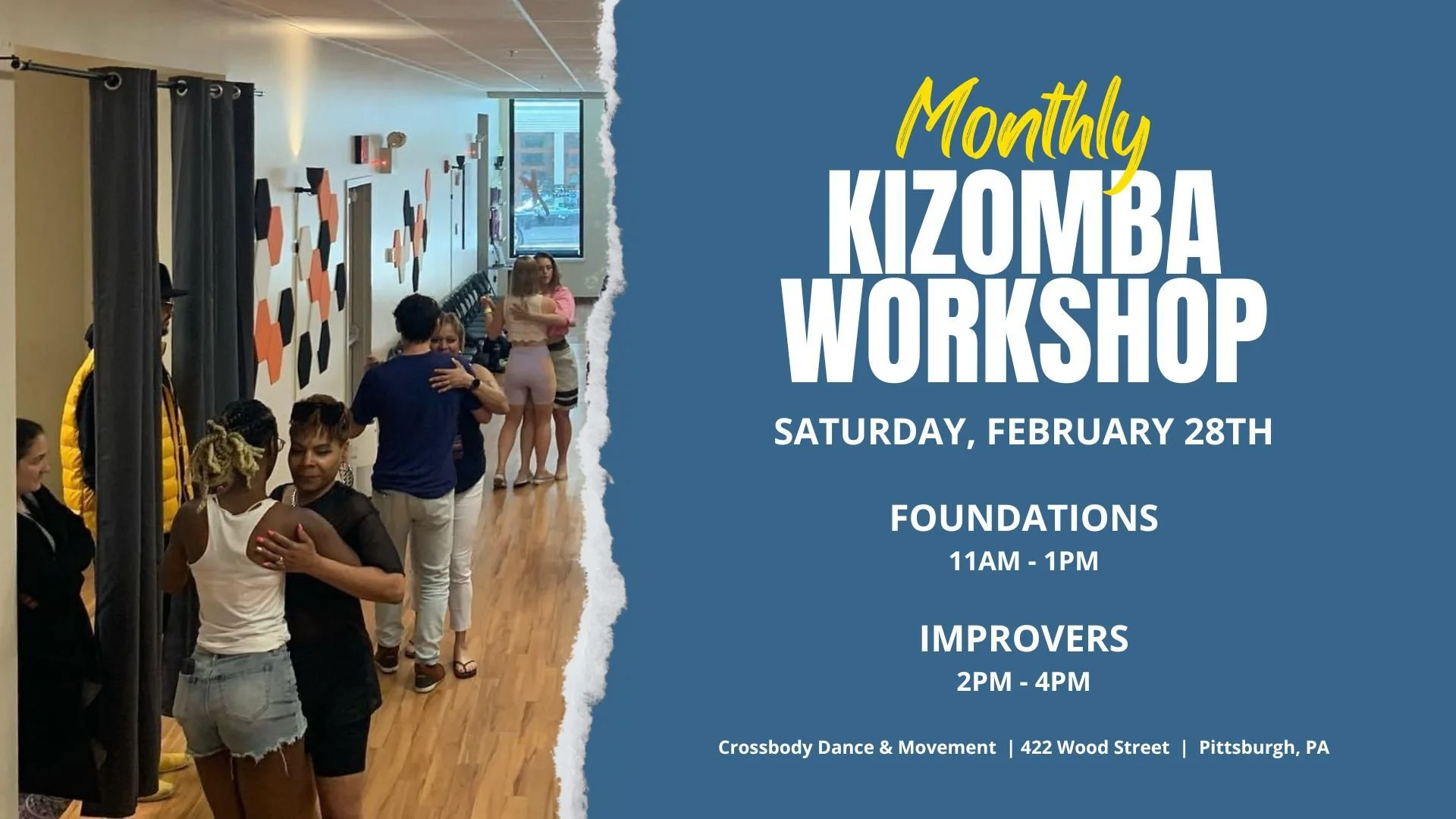 Schedule permitting, we host monthly Kizomba Workshops throughout the year. This is a 2-hour Beginner friendly workshop once a month on Saturdays, and at times our Improver workshop which is designed for those that are past the beginner stage.