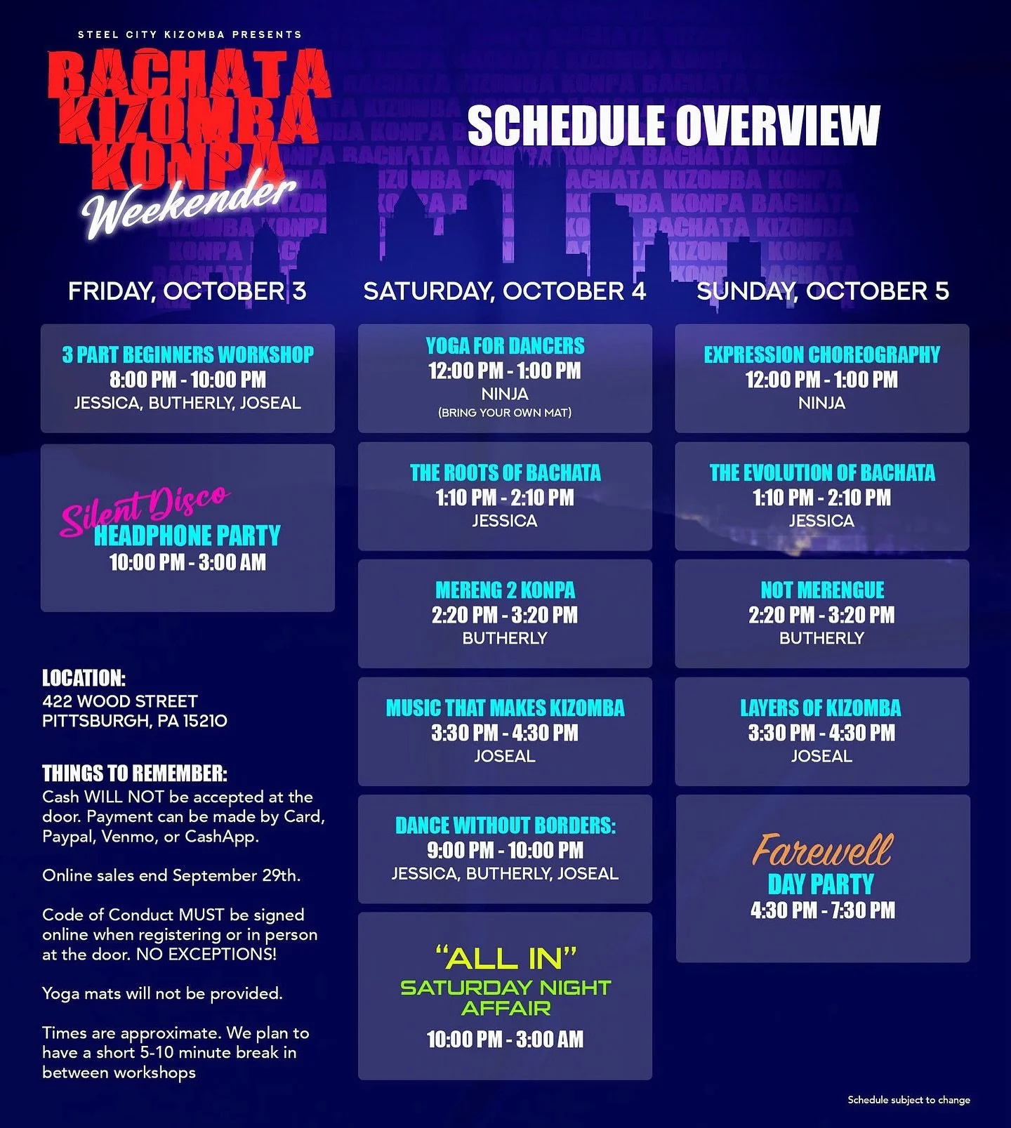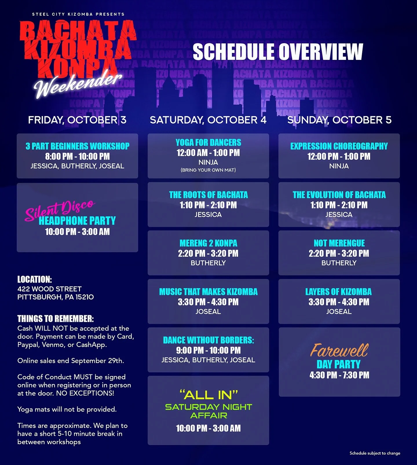Steel City Kizomba is a dance company based in Pittsburgh, PA focused on providing dance education, promoting and building a strong and dynamic scene for Kizomba as well as other African dances and their cultures, in and around Pittsburgh.